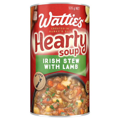 A traditional, hearty meal packed full of delicious ingredients. Wattie's® Hearty Soup Irish Stew with Lamb is a great option for lunch or dinner, best enjoyed with a piece of warm, crusty bread.